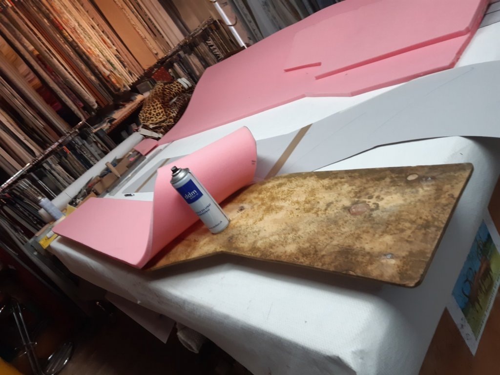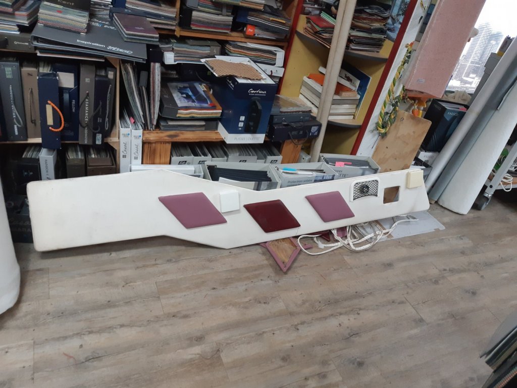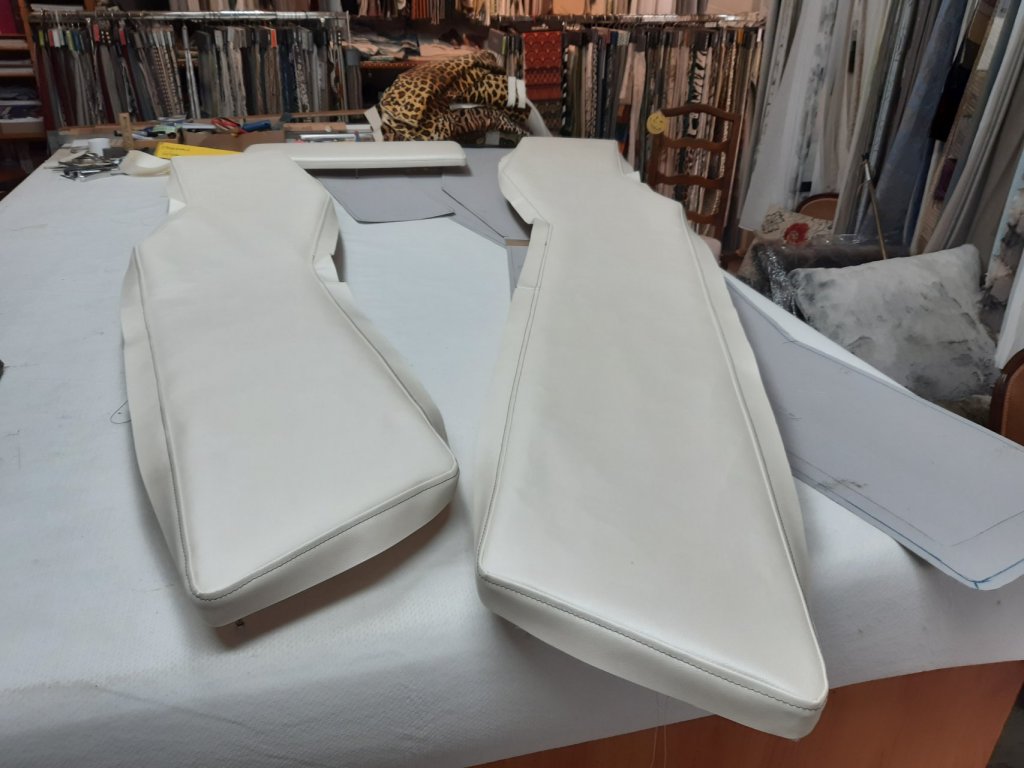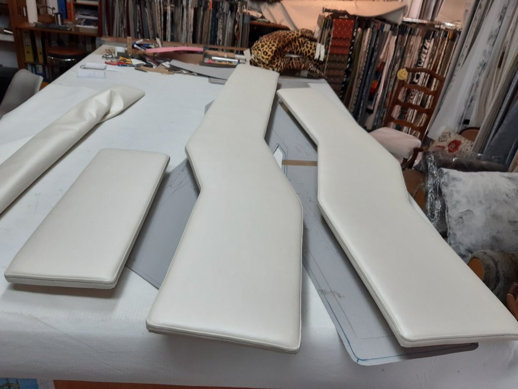 Modification et gainage de parmentage de bateau en simili-cuir adapté.